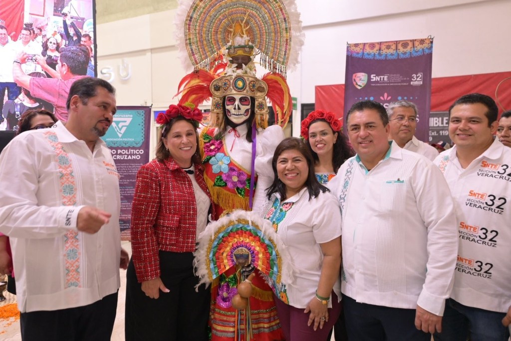 Xalapa, Ver., martes 29 de octubre de 2024.- Para promover la celebración de los Fieles Difuntos, el Equipo Político Veracruzano SNTE Sección 32 instaló en Plaza Ánimas la tradicional Muestra de Altares representados e instalados por maestros y maestras de todas las regiones del estado e inaugurados por la gobernadora electa de Veracruz, Rocío Nahle García.