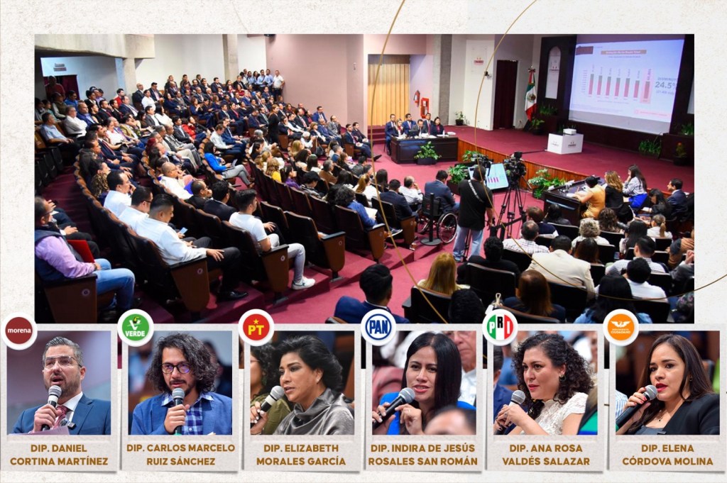 Del mismo modo, participaron las diputadas Indira de Jesús Rosales San Román (PAN), Ana Rosa Valdés Salazar (PRI) y María Elena Córdova Molina (MC), quienes abordaron lo referente al estado que guarda la deuda bancaria actualmente, términos de la reestructura de la deuda de los bonos Cupón Cero, subejercicios en 2024, cumplimiento de los contratos de 2023 al primer trimestre este año, expectativa financiera para la próxima administración estatal, recursos devueltos a la federación, política de socialización recaudatoria y el monto inicial y final de la inversión en la remodelación del estadio Luis “Pirata” Fuente.