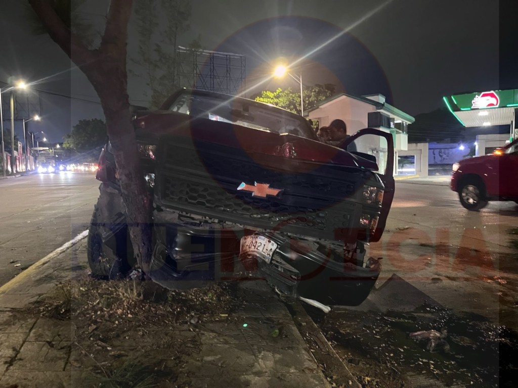 Este viernes por la noche, la conductora de una camioneta particular, que circulaba en estado de ebriedad, protagonizó un fuerte accidente, luego que se estrelló contra dos árboles en la avenida Salvador Díaz Miron.