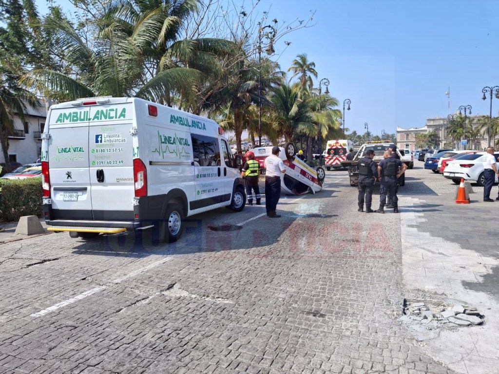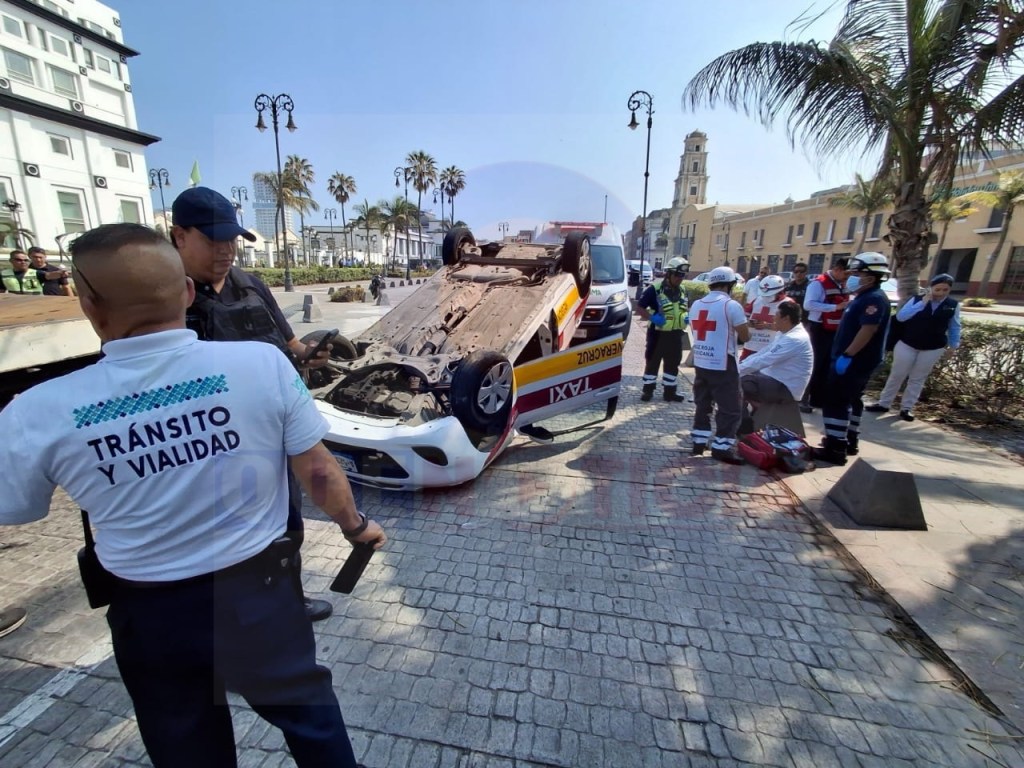 Veracruz, Ver. El operador de un taxi que circulaba por calles del primer cuadro de la ciudad de Veracruz, sufrió una volcadura en un descuido tras el volante luego de que estaba por dejar al pasajero que llevaba consigo y quien resultó con algunos golpes.