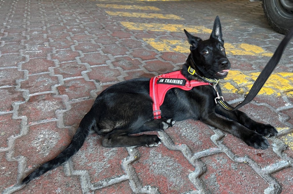 El cachorro se encuentra trabajando para poderlo ser y tener su certificaciones y poder trabajar como binomio de trabajo.