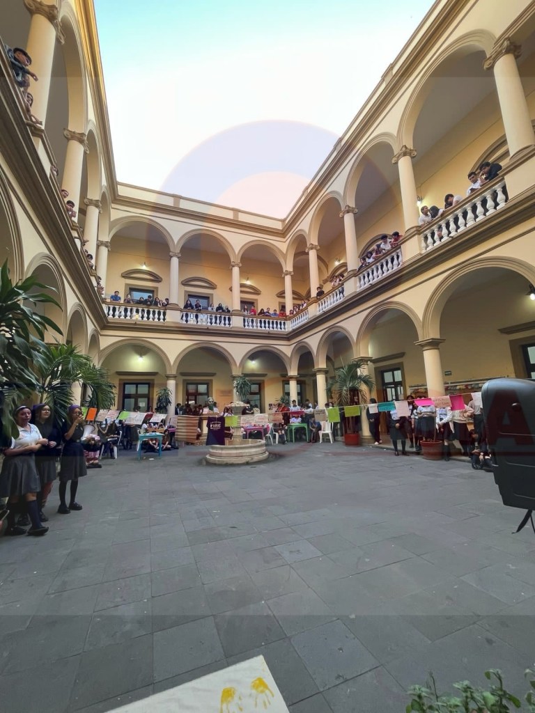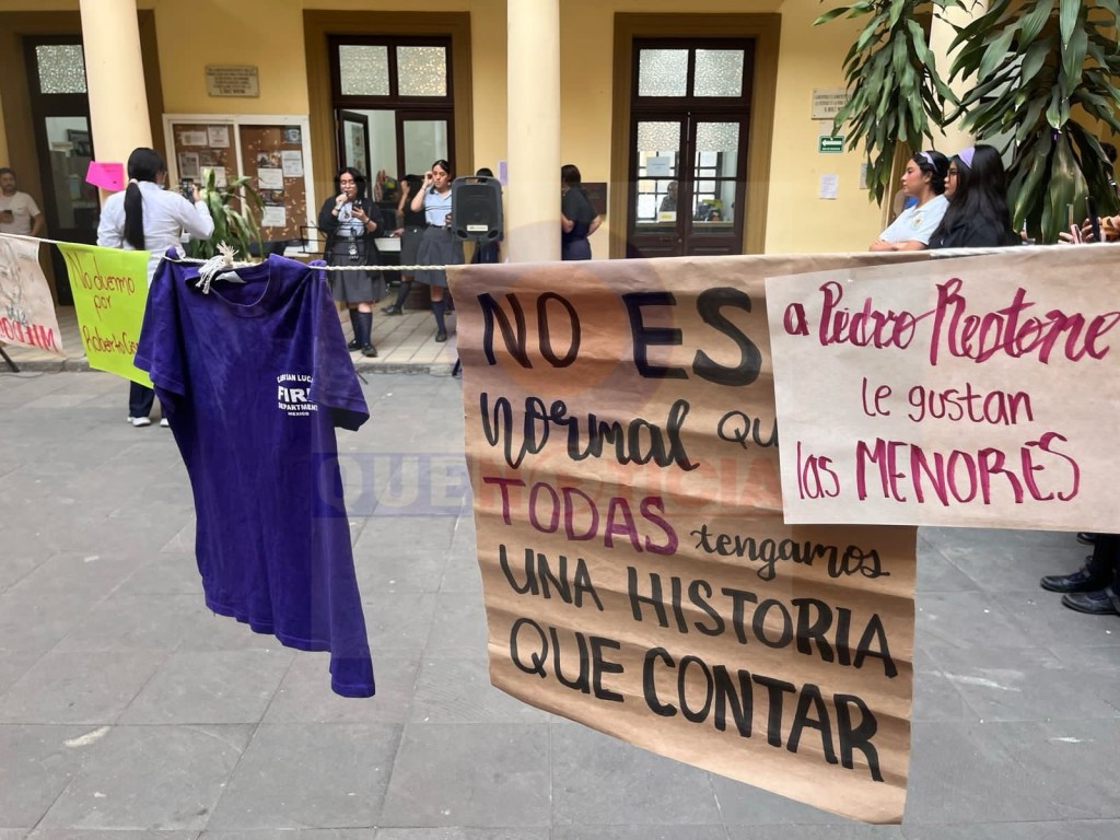 Las estudiantes realizaron una movilización pacífica en los pasillos, además de que realizaron cantos y diversas lecturas para exigir se respeten sus derechos y un alto a los acosos, de lo cual los señalados en los tendederos también aprovecharon para reírse desde el interior de las oficinas.