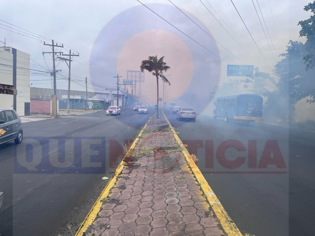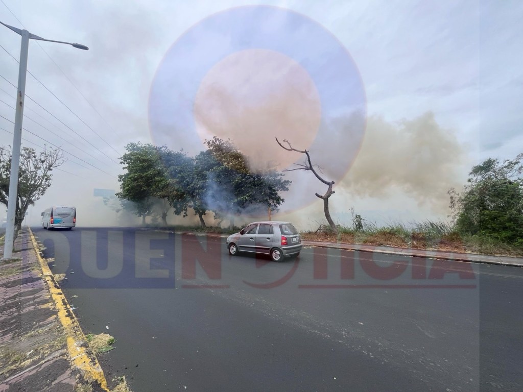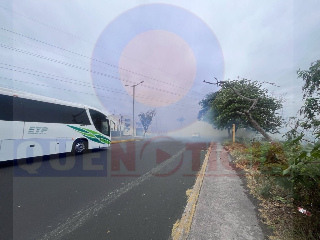 El incendio de un pastizal en las inmediaciones del entronque de Cabeza Olmeca, se salió completamente de control y dificultó la visibilidad a automovilistas que pasaban por ahí.
