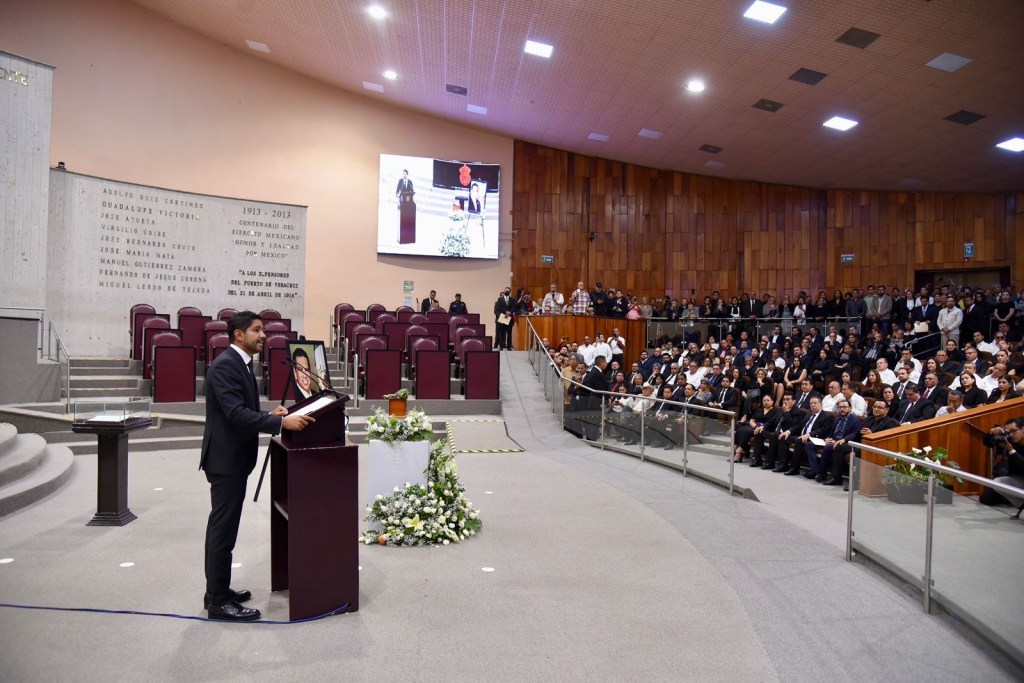 En el Recinto Oficial de Sesiones del Palacio Legislativo, ante las cenizas del exmandatario, su hijo Javier Herrera Borunda, agradeció al presidente de la Junta de Coordinación Política (Jucopo) de la LXVII Legislatura de este Congreso, diputado Esteban Bautista Hernández, y a la gobernadora de Veracruz, Rocío Nahle García, su sensibilidad y generosidad por brindar las facilidades para llevar a cabo este homenaje.