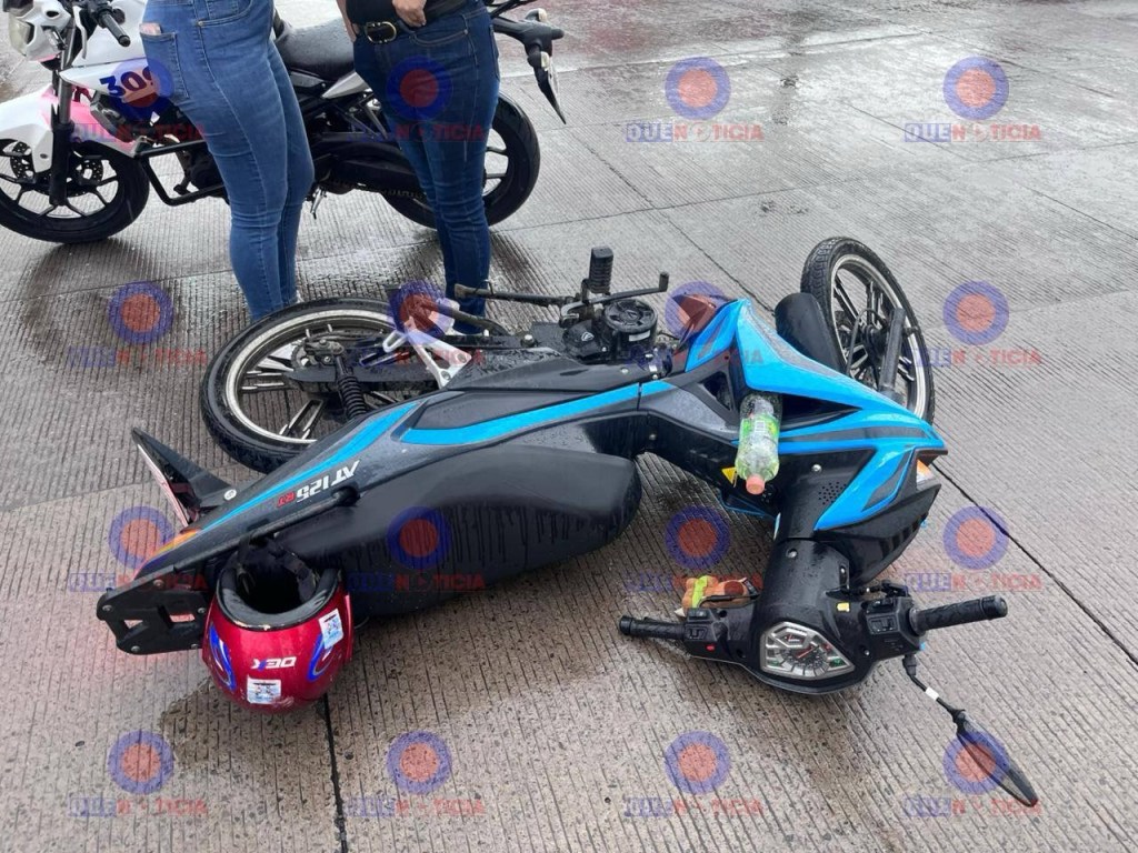 Paramédicos de la Cruz Roja llegaron hasta el lugar para brindarle los primeros auxilios a la motociclista, quien fue trasladada a un hospital con probable fractura en la pierna izquierda.