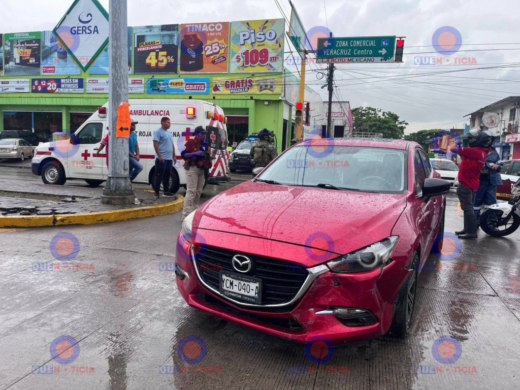 Al llegar al cruce con Úrsulo Galván, empleados de un comercio cercano señalaron que fue ella quien no respetó el alto del semáforo y se impactó en ángulo contra un auto de la marca Mazda, color rojo, que se incorporaba.