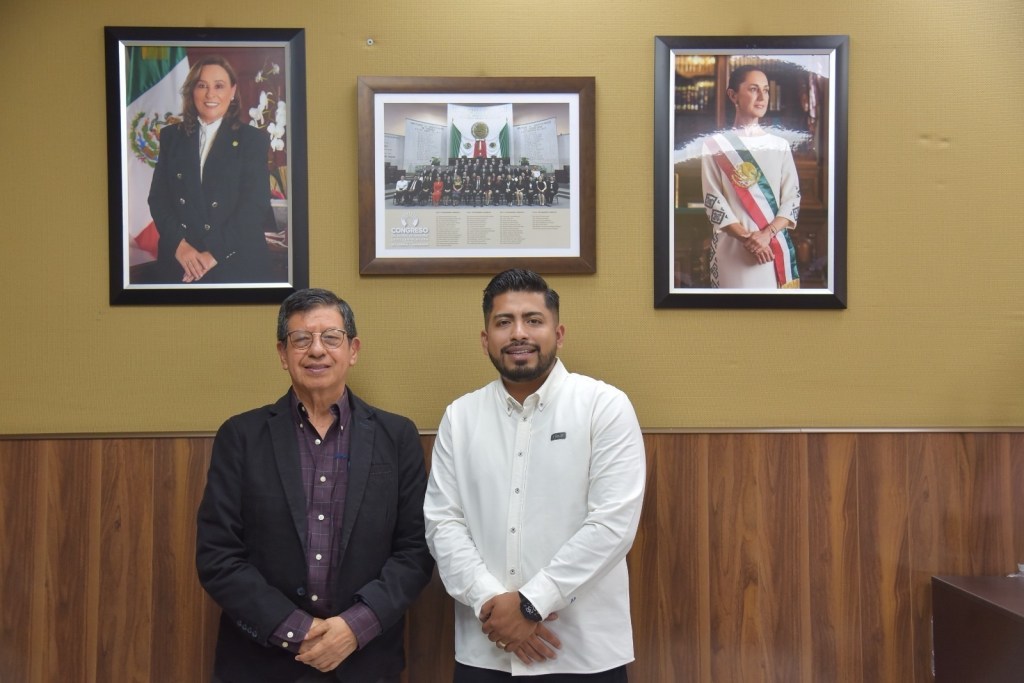 Xalapa, Ver., 22 de septiembre de 2025.- El secretario de la Mesa Directiva de la LXVII Legislatura del estado de Veracruz, diputado Alejandro Porras Marín, recibió al titular de la Dirección General de Cultura de Paz y Derechos Humanos de la Secretaría de Gobierno del Estado, Alejandro Moreno Hernández, con quien dialogó acerca del contenido del Programa Especial de Cultura de Paz y Derechos Humanos, enfocado en la coordinación interinstitucional para lograr metas a corto y mediano plazo en esta materia.