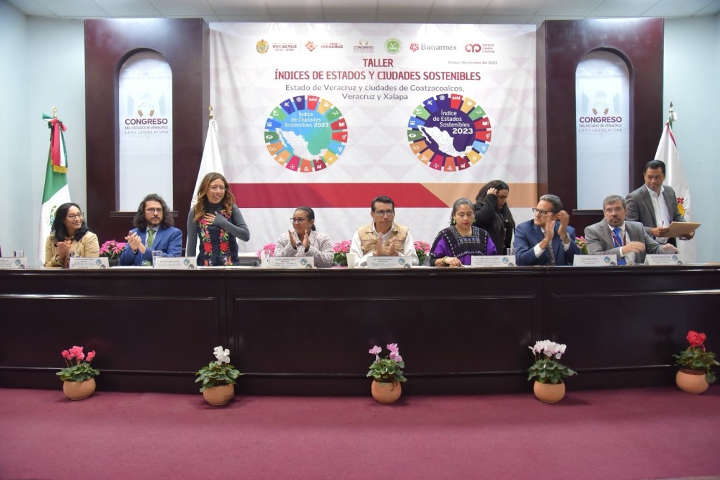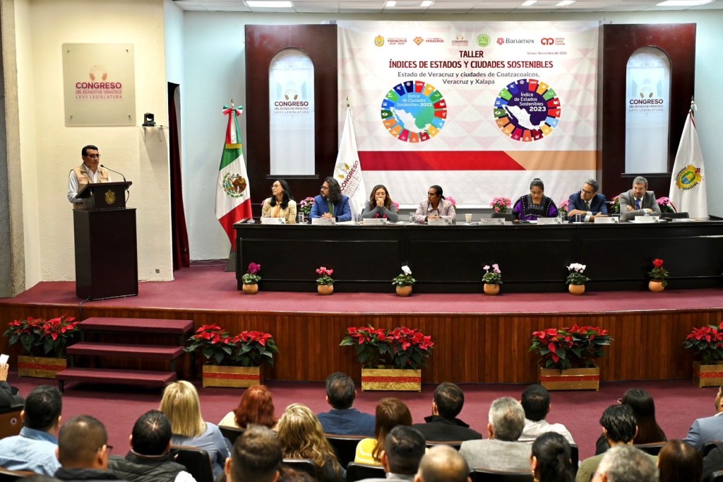Xalapa, Ver., 12 de noviembre de 2025.- El Congreso de Veracruz contribuye al fortalecimiento del cuidado del medio ambiente, a la reducción de la desigualdad y al mejoramiento del desarrollo urbano y de las condiciones de vida de los más de ocho millones de habitantes del estado, afirmó la presidenta de la Mesa Directiva de la LXVII Legislatura, Naomi Edith Gómez Santos, al inaugurar el taller Índices de Estados y Ciudades Sostenibles, organizado por el Grupo Legislativo del Partido Verde Ecologista de México (PVEM), en colaboración con el Instituto Mexicano para la Competitividad, A. C. (IMCO), la Fundación NovaGob y el Centro Mario Molina.