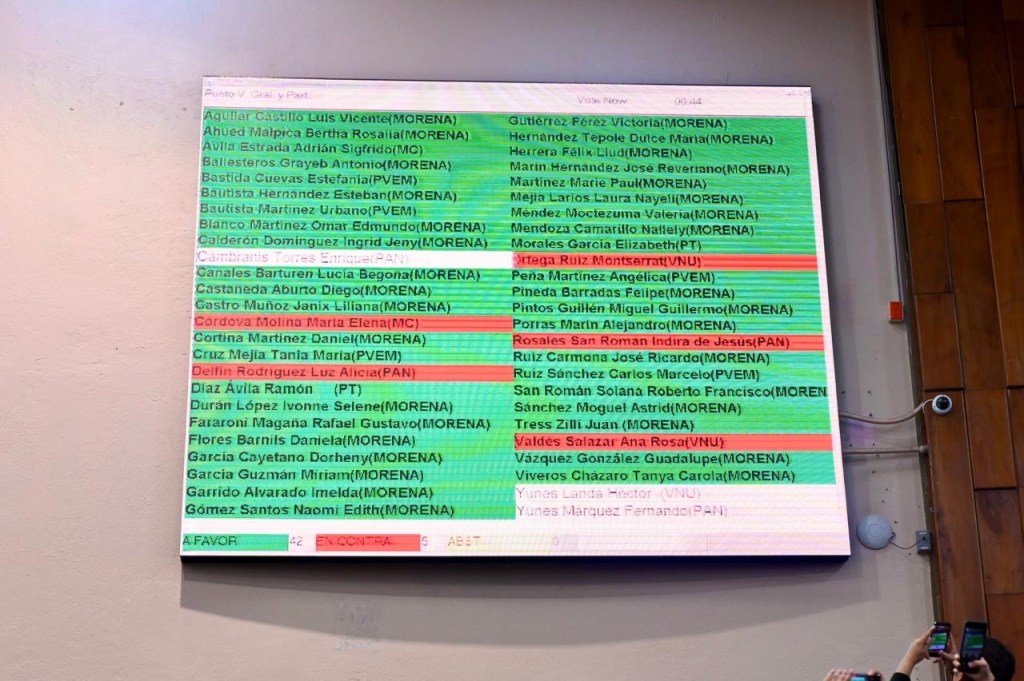 Xalapa, Ver., 25 de noviembre de 2025.- Con 42 votos a favor, cinco en contra y cero abstenciones, el Pleno de la LXVII Legislatura del estado aprobó el dictamen por el que se reforman diversas disposiciones de la Constitución Política de Veracruz relativas al procedimiento para la designación de la persona titular de la Fiscalía General del Estado (FGE) y la duración del periodo en el cargo.