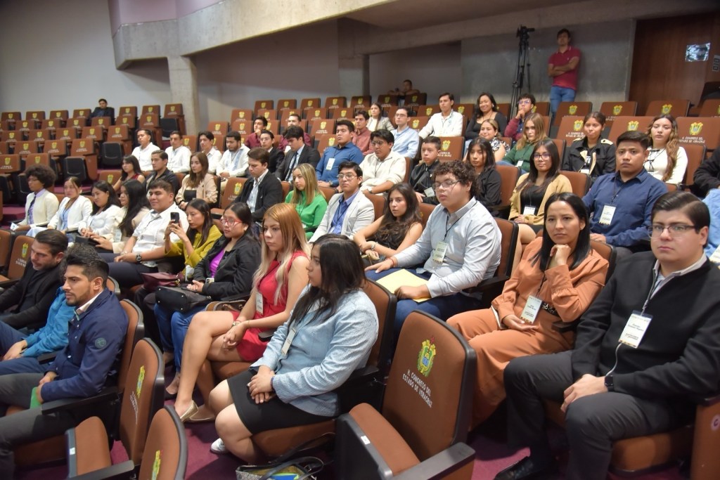 En el auditorio Sebastián Lerdo de Tejada, la presidenta de la Mesa Directiva, diputada Naomi Edith Gómez Santos; la diputada Ivonne Selene Durán López y el diputado Omar Edmundo Blanco Martínez, presidenta y secretario, de la Comisión Permanente de Juventud y Deporte y Atletas con Discapacidad, respectivamente, y la encargada del IVJ, Daisy Mariana Núñez Islas, dieron la bienvenida a las y los 50 participantes.