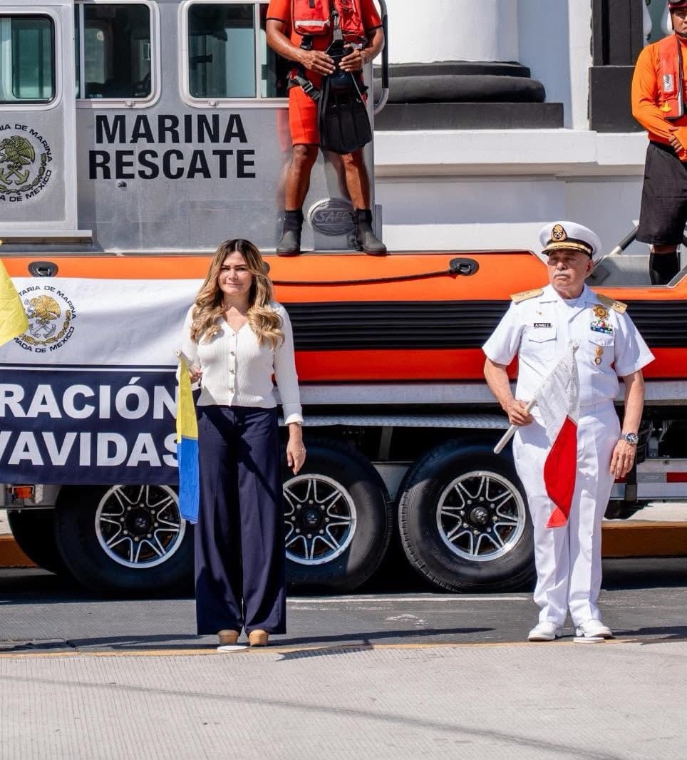 Para garantizar la seguridad de locales y visitantes durante el próximo periodo vacacional, la alcaldesa de Boca del Río, Maryjose Gamboa Torales, participó en el Banderazo de Inicio de Operaciones Salvavidas, Semana Santa 2026, realizado en las instalaciones de la Primera Región Naval de la Secretaría de Marina.